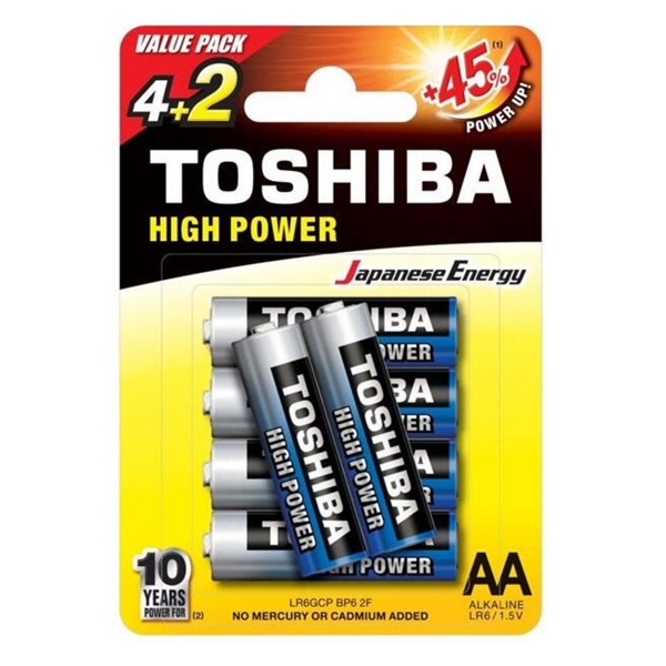 ΑΛΚΑΛΙΚΕΣ ΜΠΑΤΑΡΙΕΣ AA TOSHIBA LR6GCP BP-6 2F 1.5V 6τεμ.