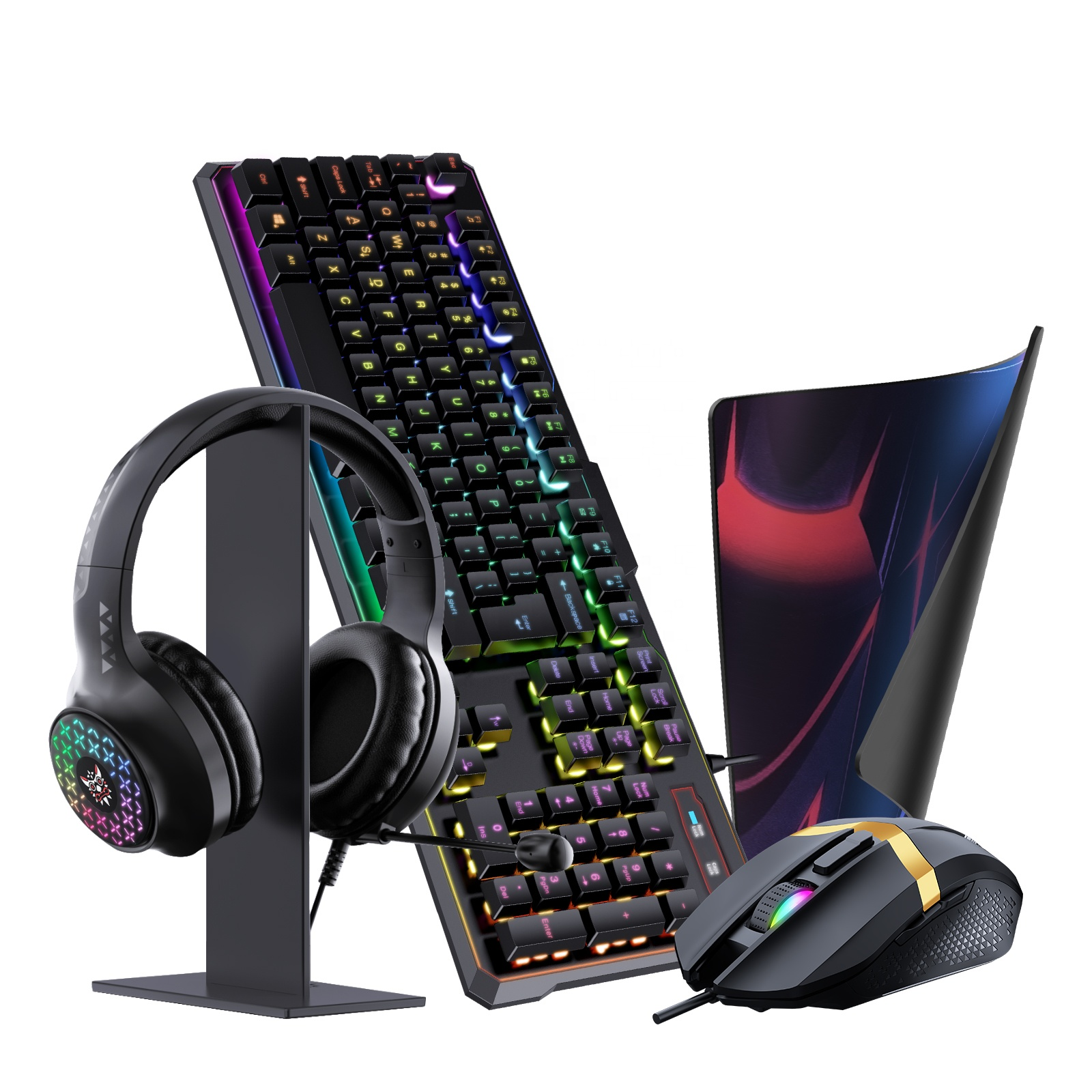 Gaming combo – Gaming Mouse, Mouse Pad, Gaming Keyboard, Gaming Headset и Headset Stand