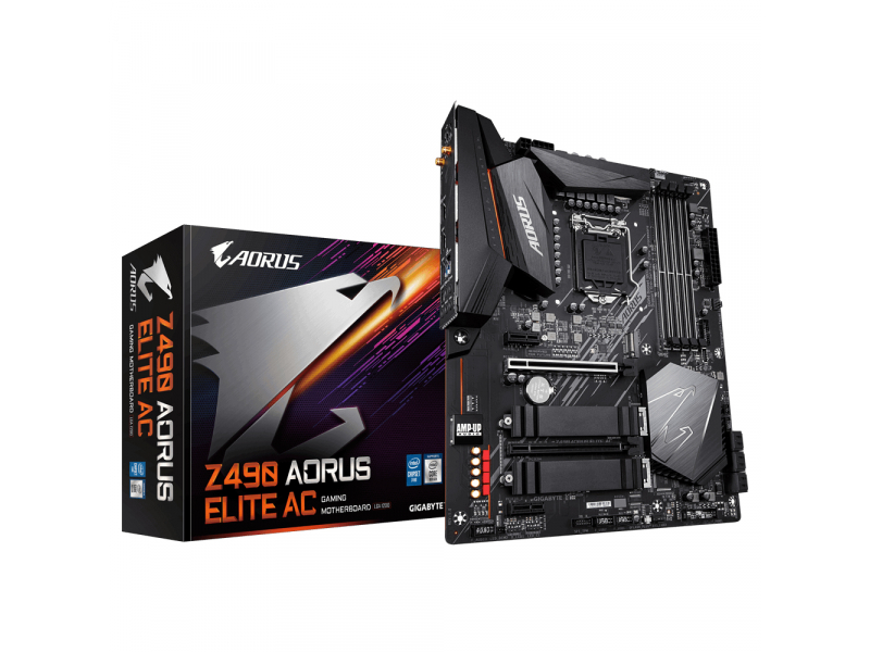 Gigabyte Z490 AORUS ELITE AC. Processor manufacturer Intel, Processor socket LGA 1200, Compatible processor series Intel® Celeron®, Intel® Core™ i3, Intel Core i5, Intel Core i7, Intel Core i9, Intel® Pentium®. Supported memory types DDR4-SDRAM, Memory slots type DIMM, Supported memory clock speeds 4933,5000,2133,2400,2666,2800,2933,3000,3200,3300,3333,3400,3466,3600,3666,3733,3800,3866,4000,4133,. Supported storage drive interfaces M.2,PCI Express,Serial ATA III, Supported storage drive types HDD,SSD. Parallel processing technology support 2-Way CrossFireX,Quad-GPU CrossFireX. Ethernet interface type 2.5 Gigabit Ethernet, LAN controller Realtek RTL8125, Wi-Fi standards 802.11a,802.11b,802.11g,Wi-Fi 4 (802.11n),Wi-Fi 5 (802.11ac)