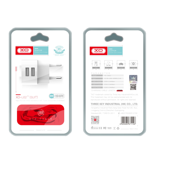 XO TRAVEL CHARGER L62 2.4A + DATA CABLE TYPE C white XO TRAVEL CHARGER L62 2.4A + DATA CABLE TYPE C white XO TRAVEL CHARGER L62 2.4A + DATA CABLE TYPE C white