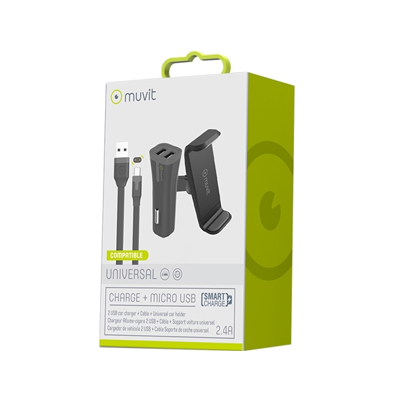 MUVIT CAR CHARGER 2 USB PORTS 2.4A  + CABLE MICRO USB + CAR HOLDER