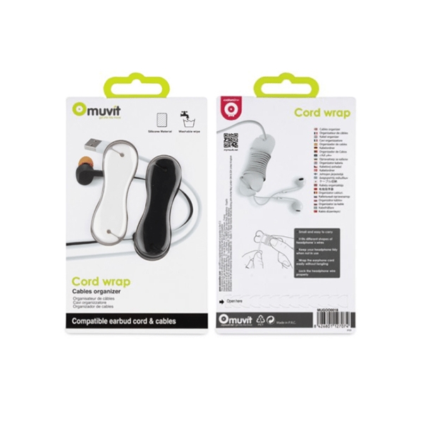 MUVIT CABLE HOLDER SPOOL SILICON 2pcs black white