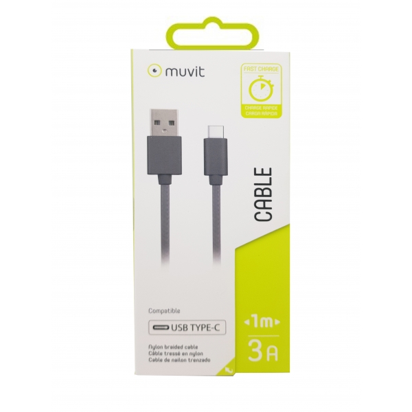 MUVIT DATA CABLE BRAIDED TYPE C 1M 3A dark grey