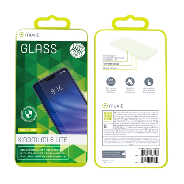 MUVIT TEMPERED GLASS XIAOMI MI 8 LITE   , 9H TRANSPARRENCY 99%