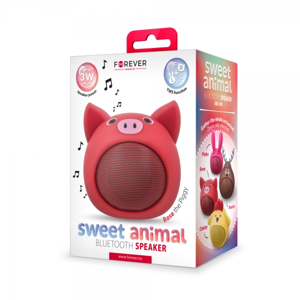 FOREVER BLUETOOTH SPEAKER ABS-100 ANIMAL PIG ROSE
