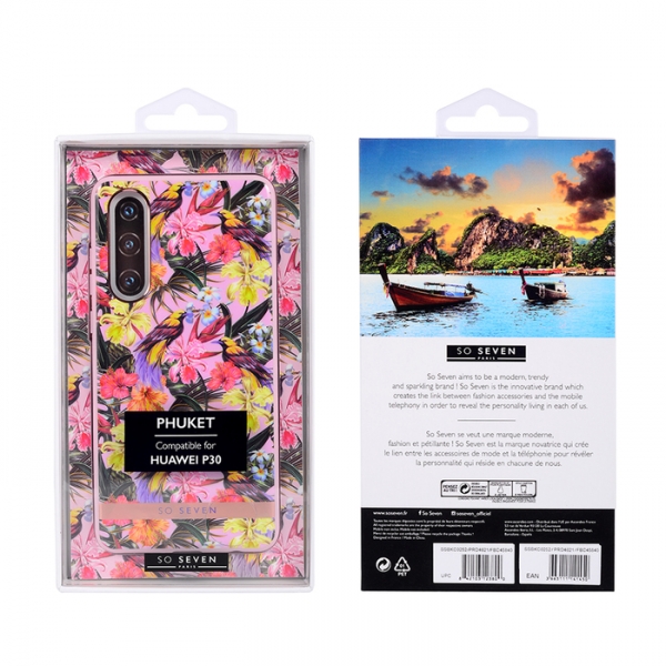 SO SEVEN PUCKET TROPICAL PINK BIRD HUAWEI P30 backcover