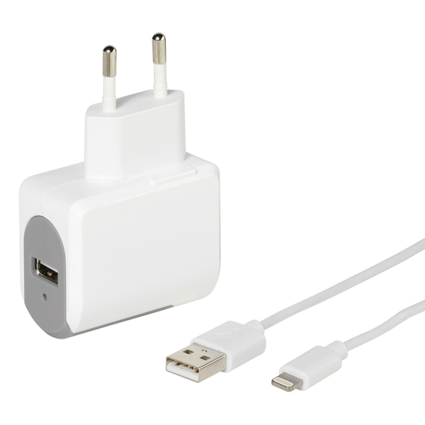 VIVANCO TRAVEL CHARGER MFI 2.4A + DATA CABLE LIGHTNING 1m white